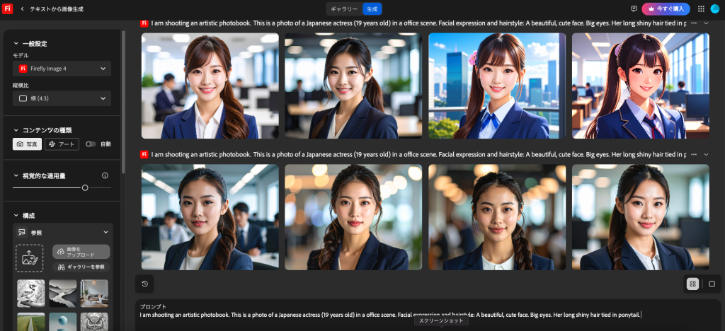 Adobe Firefly(Image 4を含む)で日本人の画像を生成する際には、以下の点に注意すると、よりリアルで適切な結果が得られやすくなります。